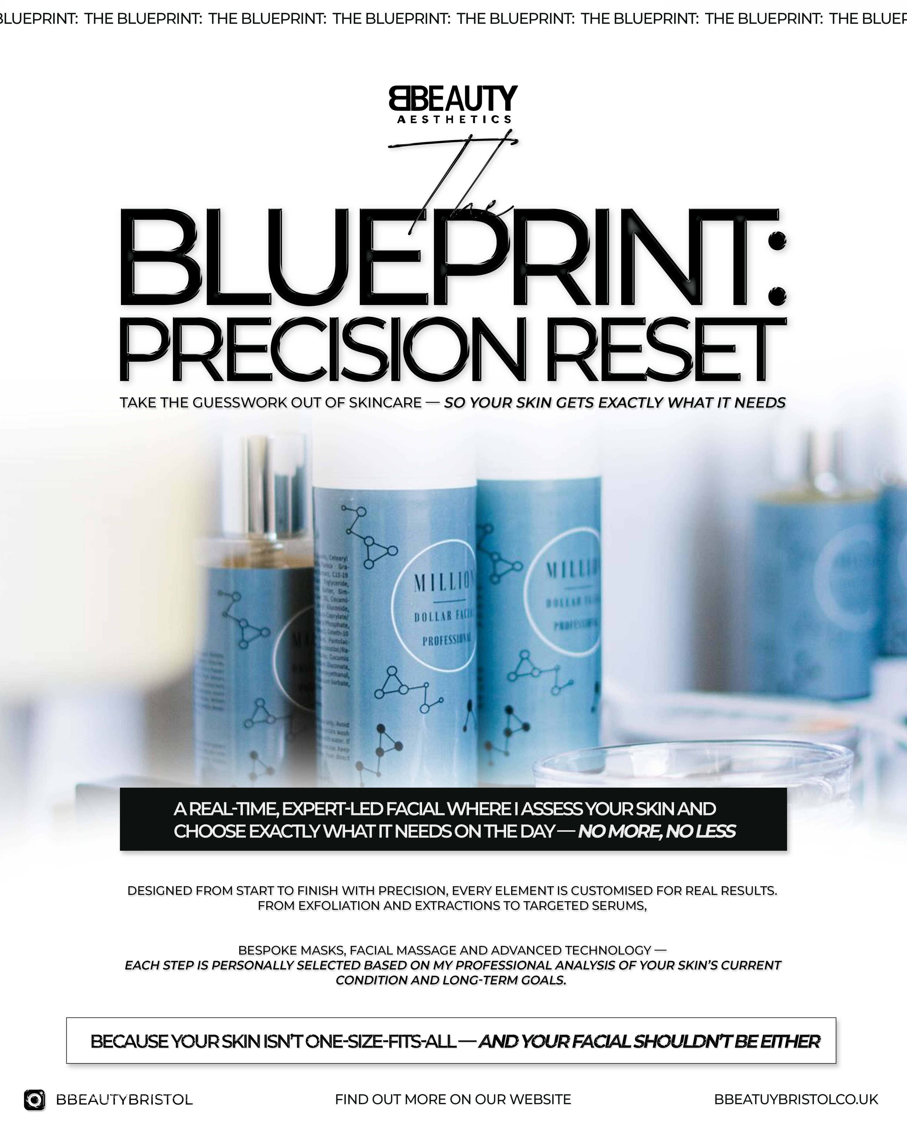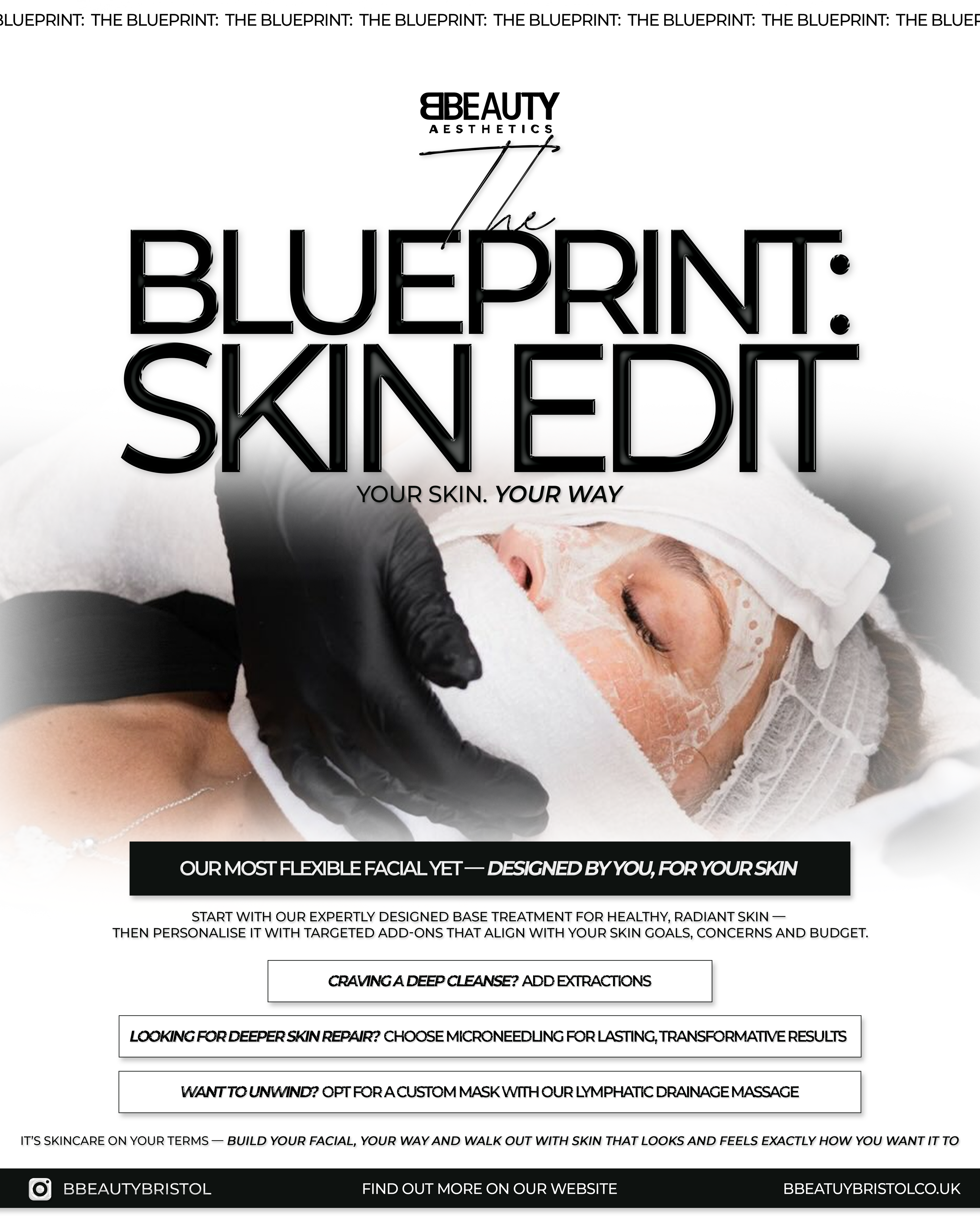 From the moment you book, you’re in control. Hand-pick every element of your facial to suit your needs — and your budget. Whether it’s deep cleansing, intense hydration, pure relaxation, or an all-over glow, THE BLUEPRINT: adapts to you.